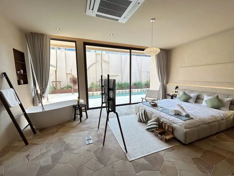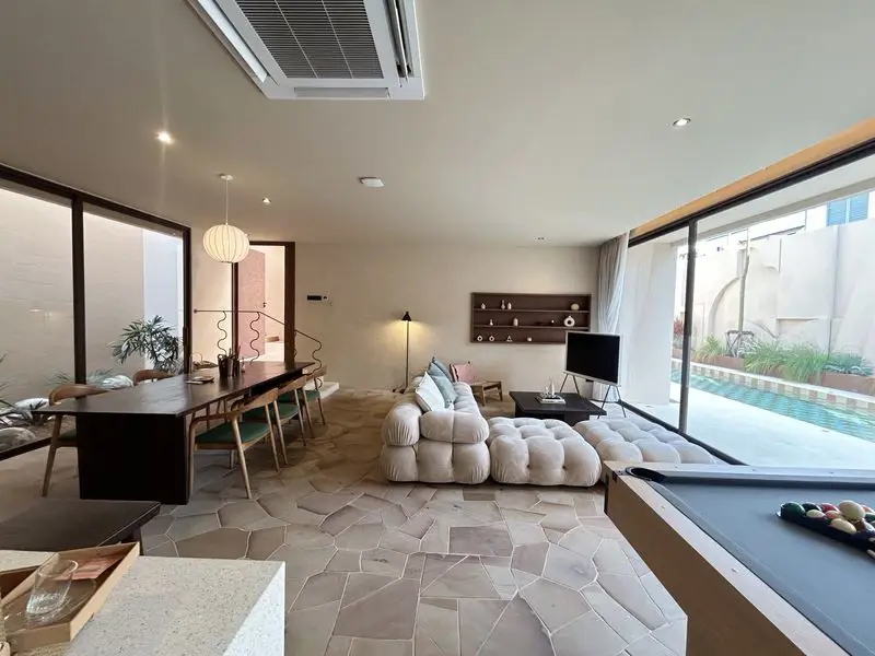 This beautifully designed 5-bedroom, 6-bathroom pool villa offers 400 sqm of elegant living space on a 544 sqm plot. With thoughtful architecture and a warm, natural ambiance, this villa is a true feast for the eyes and soul.