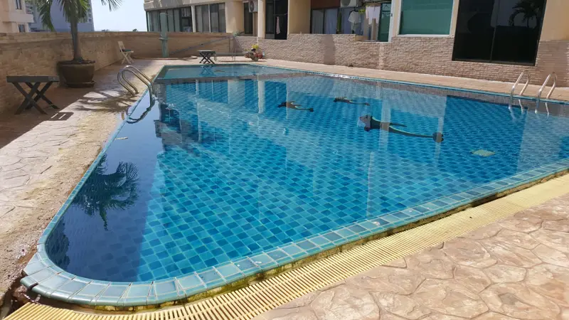 - Communal swimming pool (some units may have sea views from the pool).