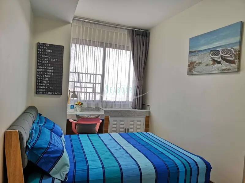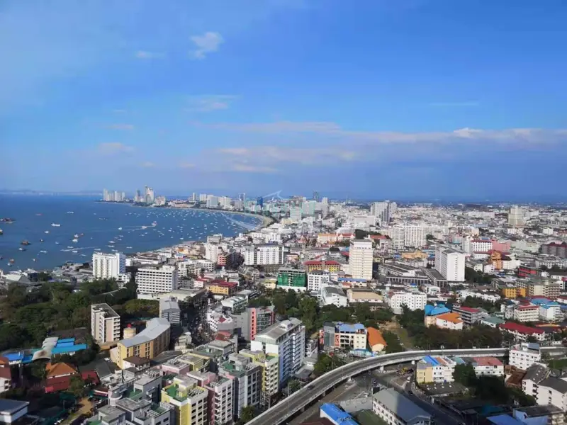 offers expansive lush gardens and beautiful views of Pattaya City from this studio apartment. The apartment is fully furnished and has a modern bathroom.